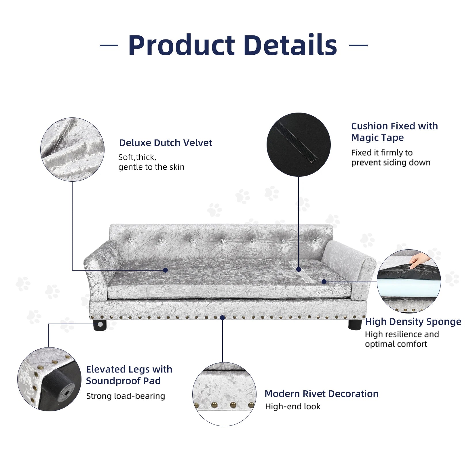 L XXL Large Dog Bed Sofa Dutch Velvet Upholstered Pet Lounge Chair Couch Bed Solid Wood Legs Detachable Pad Pet Supplies